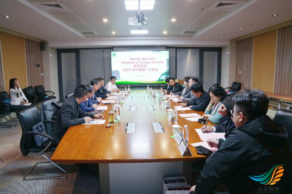 山农融媒12月12日讯&苍产蝉辫;12月11日,韩国光州大学校长金东振一行来校访问,双方围绕教育教学、科技合作进行座谈。学校副校长林海会见客人。